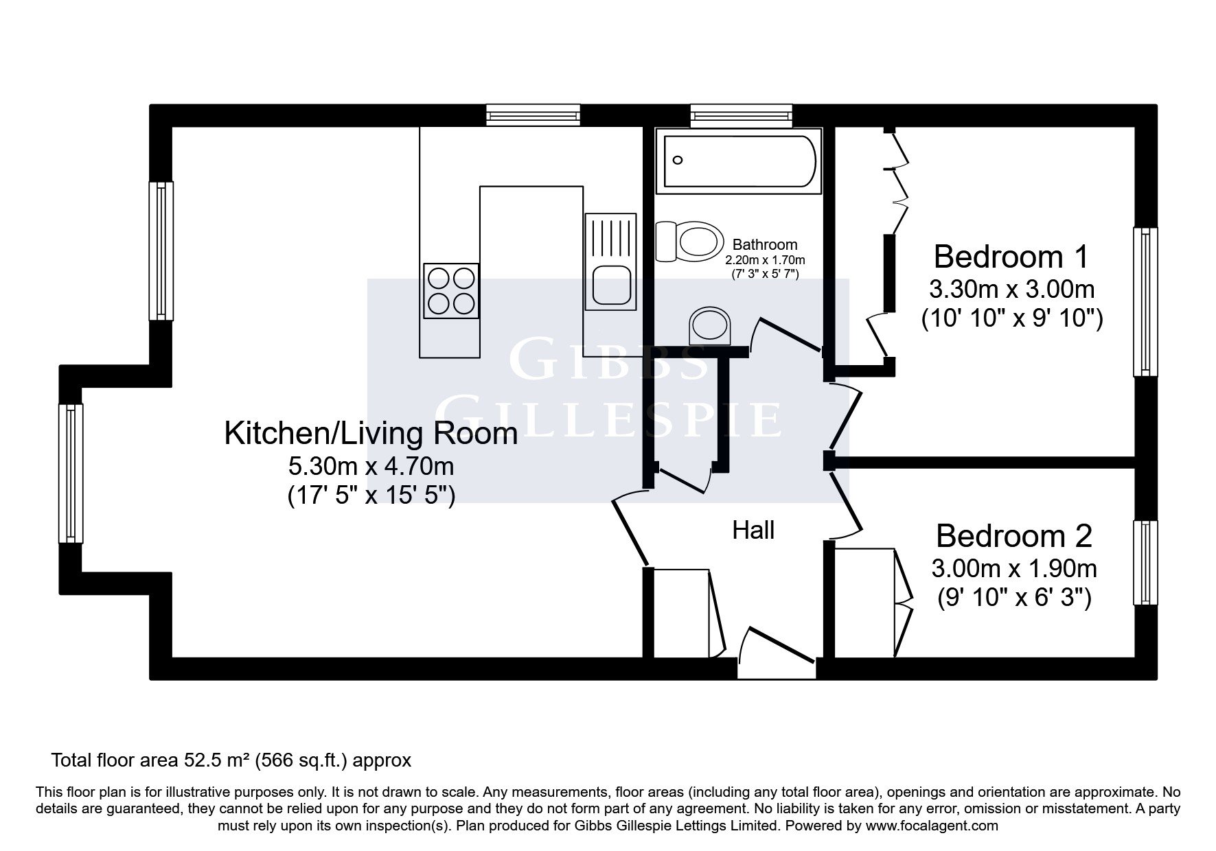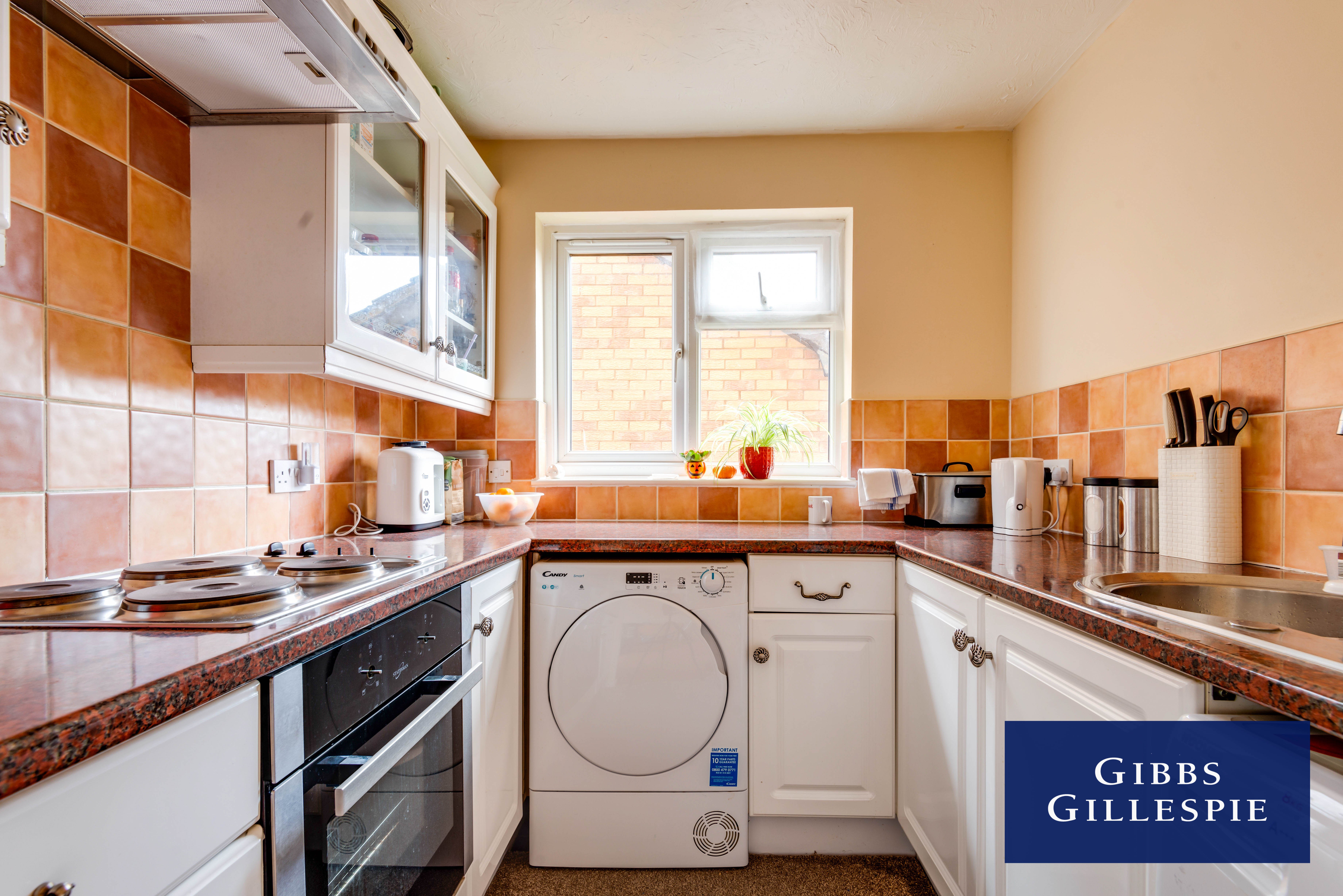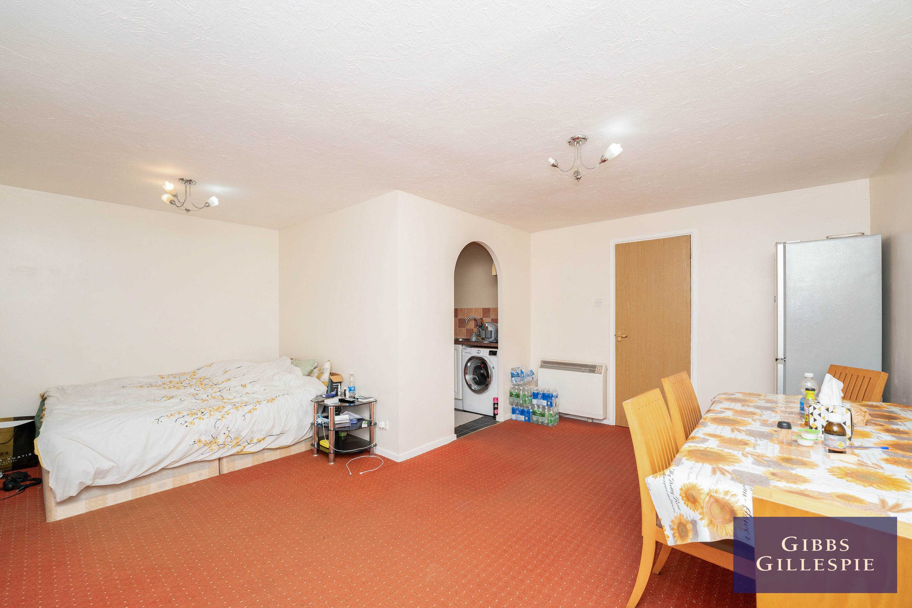 Accommodation comprises of entrance hallway with storage cupboards, door to living room, bathroom featuring bath with shower above, archway leading to kitchen with appliances, one double bedroom and one single bedroom. The property also benefits from communal parking and electric heating.