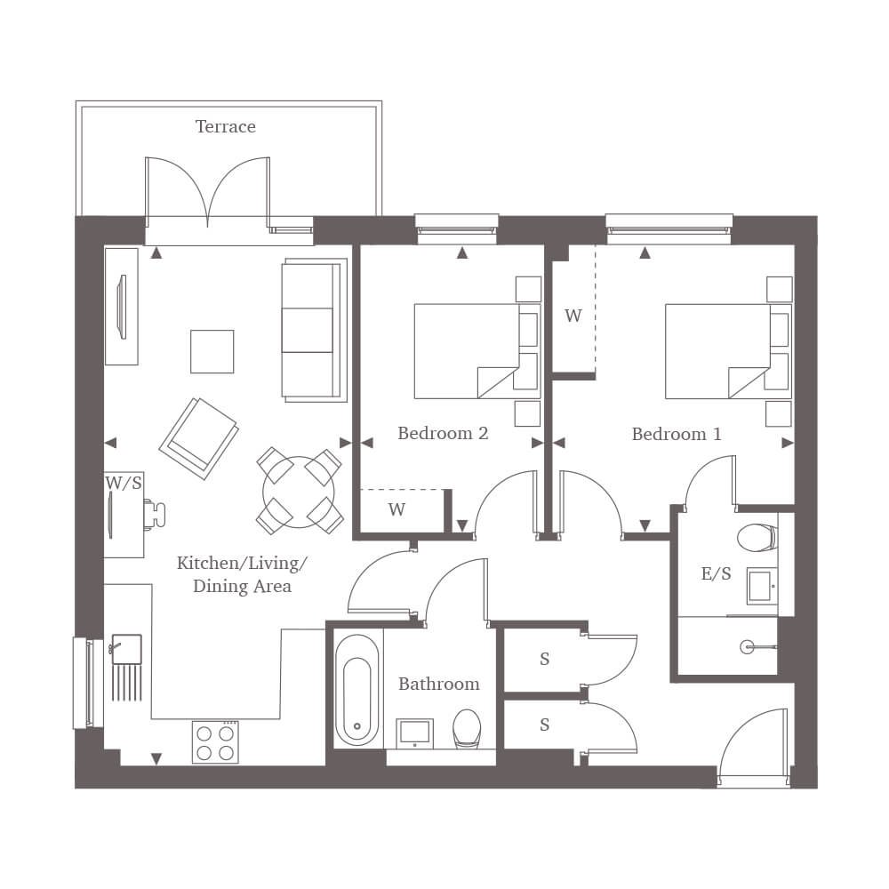 - 758 sq ft Newly Built 2 Bedroom First Floor Apartment