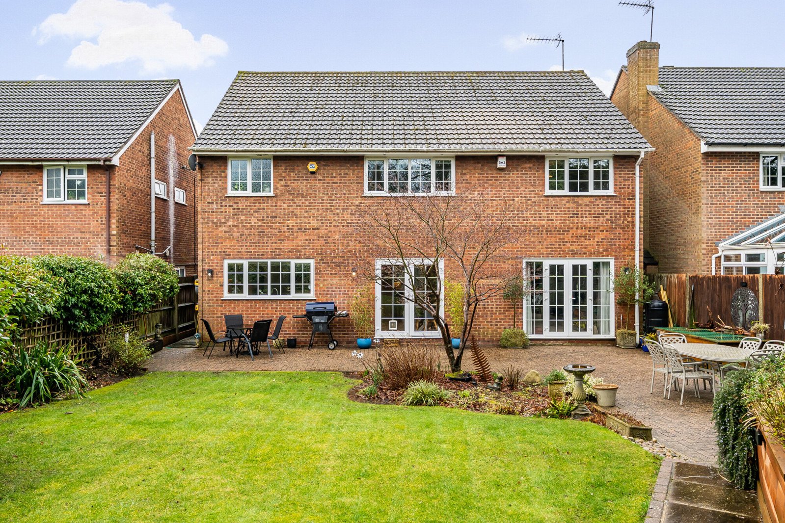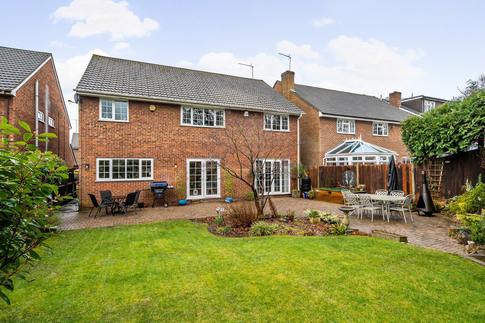 An Immaculately presented detached house boasting five spacious bedrooms in a desirable residential area. This charming property features a well-maintained garden with a patio area, perfect for outdoor entertaining. The house also benefits from off-street parking and a garage, providing ample space for vehicles and storage. The spacious and light filled interior boasts a modern fitted kitchen/dining room, an elegant lounge with feature bay window and dining area, creating a comfortable and inviting living space, with French doors opening out to the enclosed rear garden. A welcoming entrance hallway and guest cloakroom completes the ground floor. Rising to the first floor the principal bedroom has fitted wardrobes and an en-suite bathroom, while the remaining three bedrooms share a family bathroom. Two of the bedrooms benefit from fitted wardrobes. Completing this floor is the fifth...