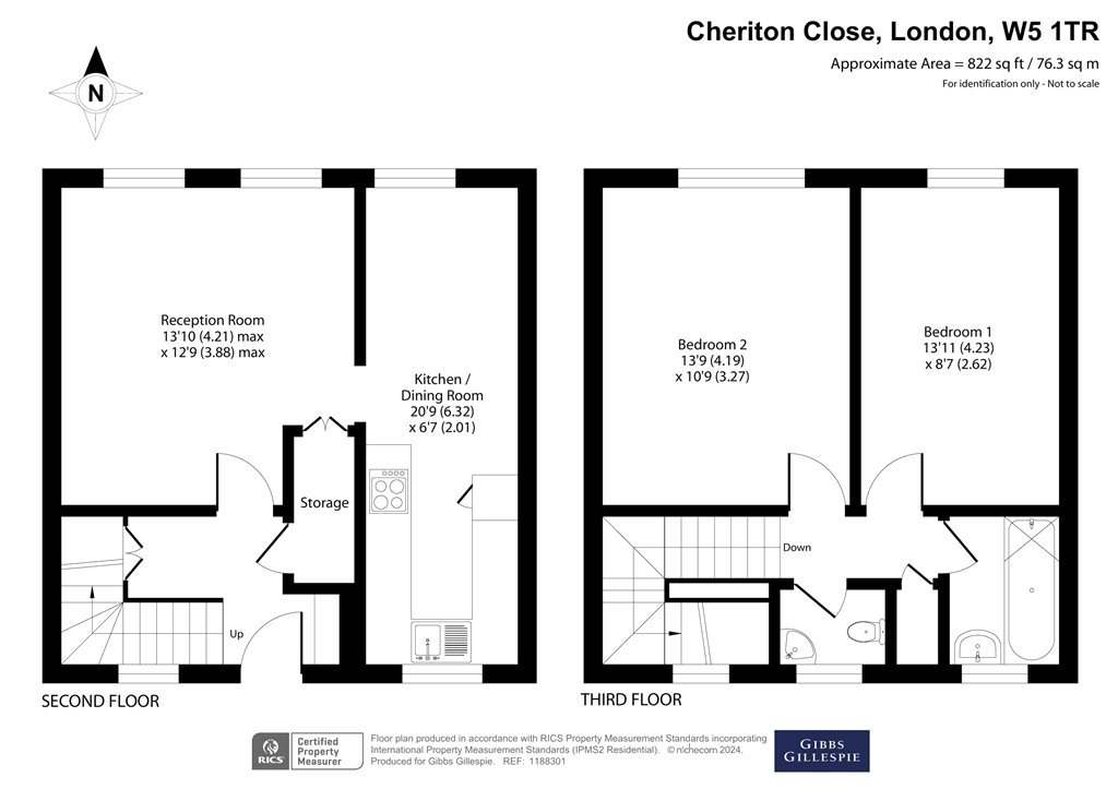 - No Onward Chain. 822 sq ft /76.3 sq. m